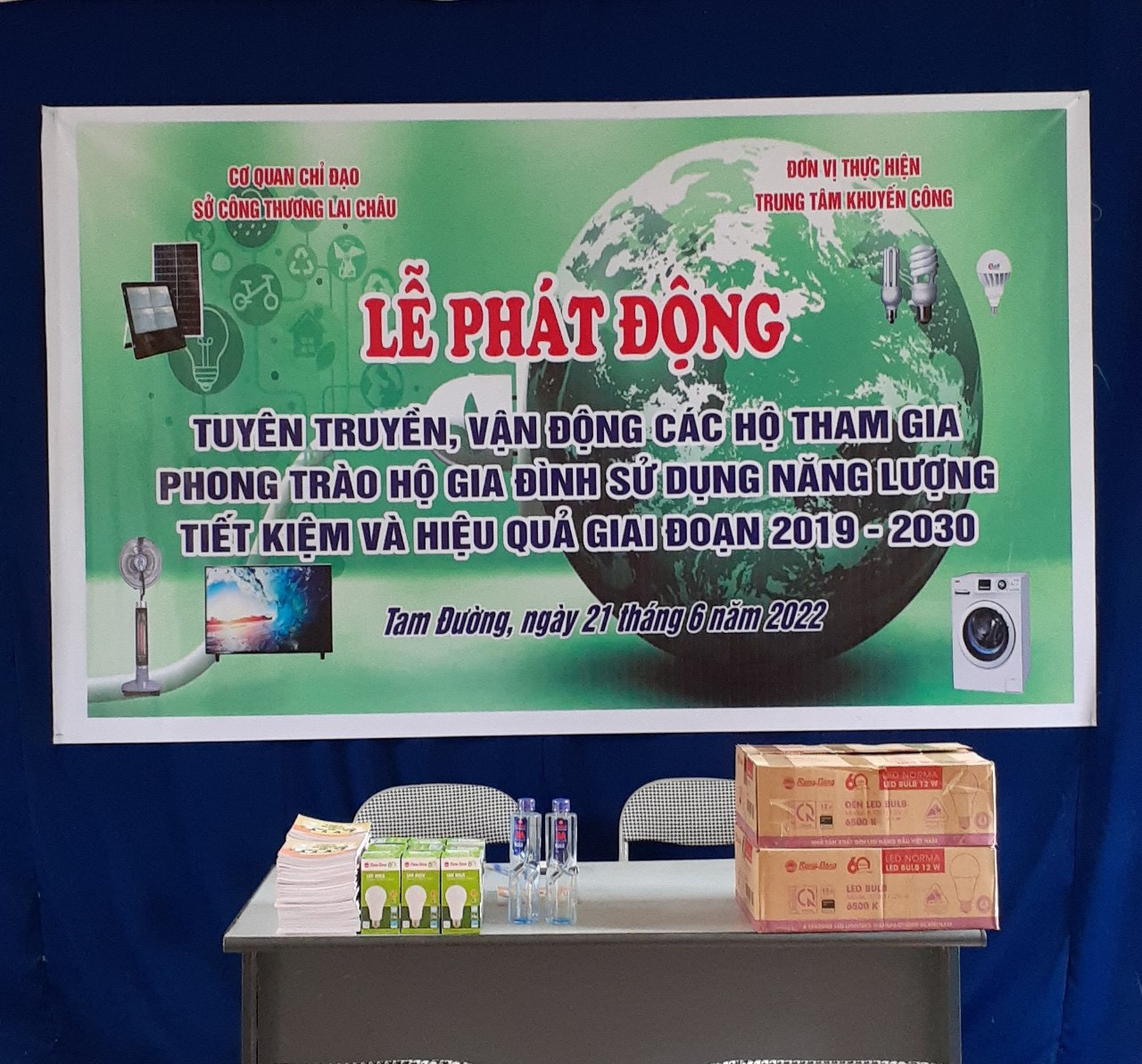 Thực hiện Quyết định số 1600/QĐ-UBND, ngày 02 tháng 12 năm 2019 của UBND tỉnh Lai Châu về việc ban hành Kế hoạch thực hiện Chương trình quốc gia về Sử dụng năng lượng tiết kiệm và hiệu quả trên địa bàn tỉnh Lai Châu giai đoạn 2019-2030. Trong 02 ngày 14/6/2022 và 21/6/2022, Trung tâm Khuyến công tổ chức 02 buổi tuyên truyền, vận động các hộ gia đình tham gia phong trào “Hộ gia đình sử dụng năng lượng tiết kiệm và hiệu quả” cho 100 hộ gia đình tại Bản Vàng Pheo, xã Mường So, huyện Phong Thổ và Bản Bình Luông, thị trấn Tam Đường, huyện Tam Đường.
