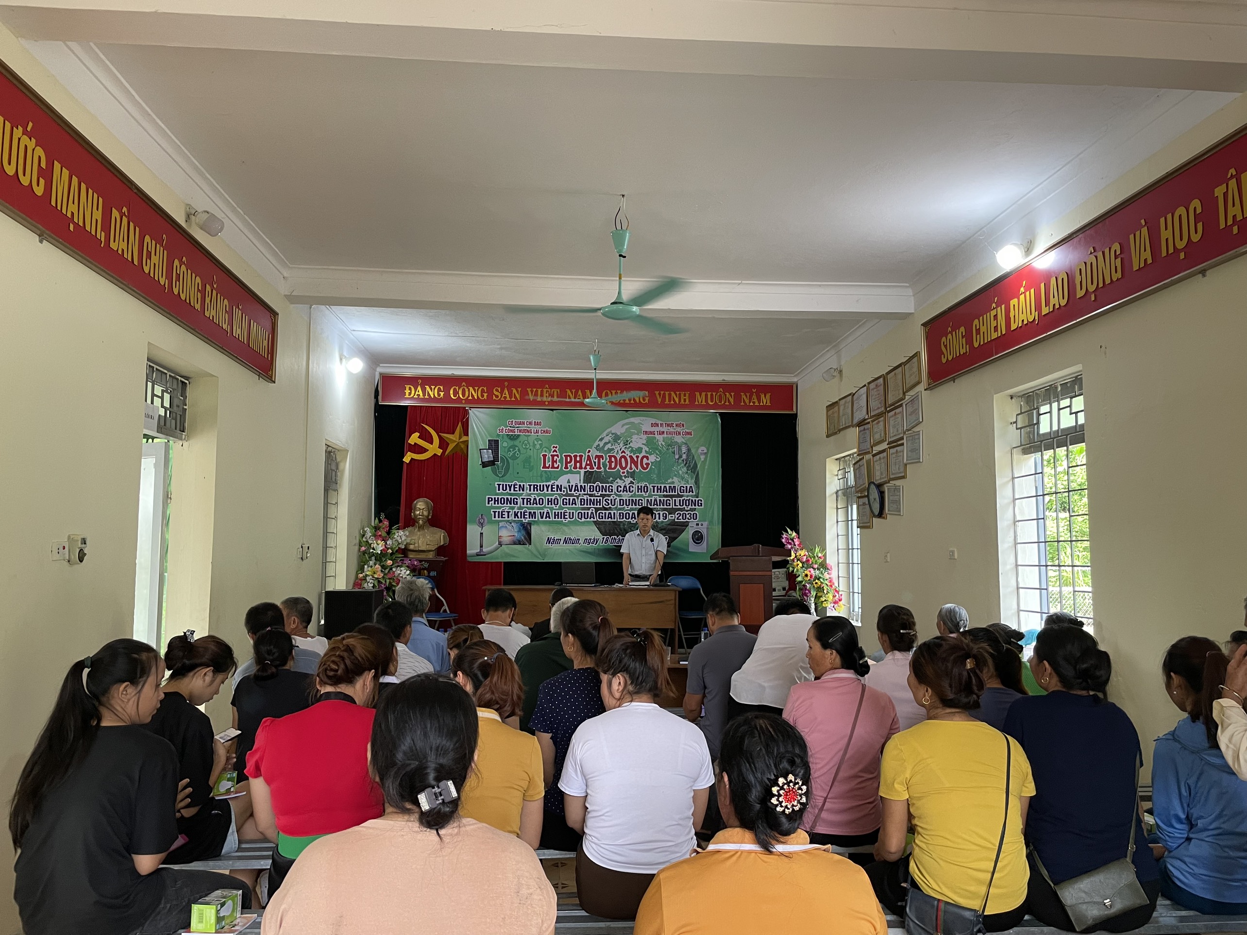 Ngày 18/7/2023, Trung tâm Khuyến công tỉnh Lai Châu đã phối hợp với UBND Thị trấn Nậm Nhùn, huyện Nậm Nhùn tổ chức buổi tuyên truyền vận động các hộ gia đình tham gia phong trào "Hộ gia đình sử dụng năng lượng tiết kiệm và hiệu quả" cho 50 hộ gia đình tổ dân phố Nậm Hàng, thị trấn Nậm Nhùn, huyện Nậm Nhùn. Tại buổi tuyên truyền, tuyên truyền viên của Trung tâm Khuyến công đã giới thiệu, hướng dẫn cho người dân những giải pháp tiết kiệm điện, thông tin hữu ích liên quan đến việc tiêu thụ điện năng của các thiết bị trong gia đình....Bên cạnh đó, người dân cũng được tư vấn sử dụng tiết kiệm, hiệu quả các loại năng lượng khác như: gas, xăng, than, bóng đèn và dàn năng lượng mặt trời...