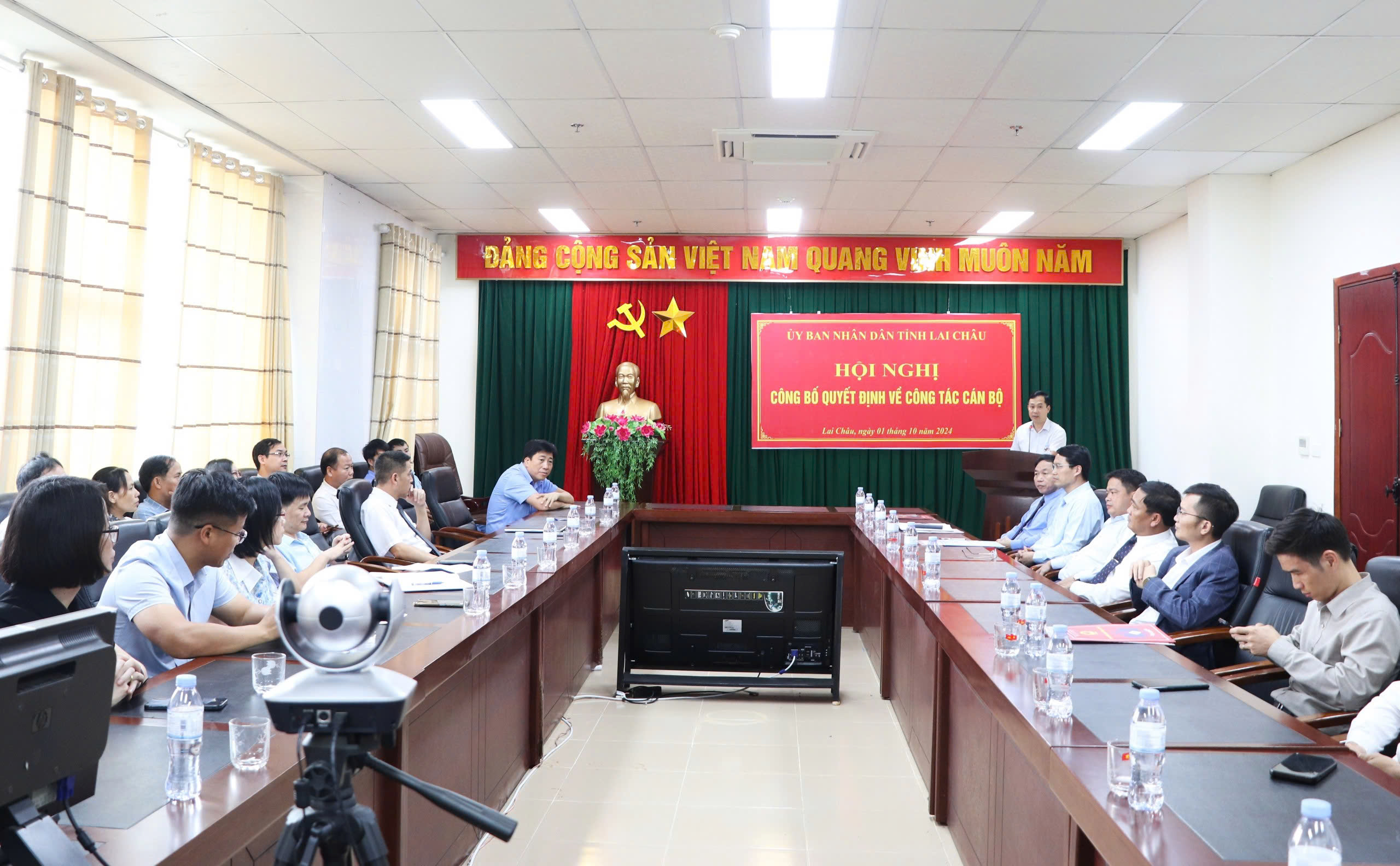 Chiều ngày 01/10/2024, UBND tỉnh Lai Châu tổ chức Hội nghị công bố và trao Quyết định về công tác cán bộ. Đồng chí Lê Văn Lương - Phó Bí thư Tỉnh ủy, Chủ tịch UBND tỉnh dự, phát biểu chúc mừng và giao nhiệm vụ.