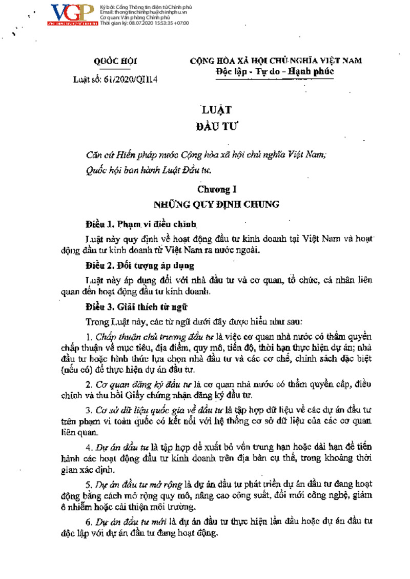 | Số hiệu | 61/2020/QH14 | Cơ quan ban hành | 64dd9c648758be18e60eab52 |