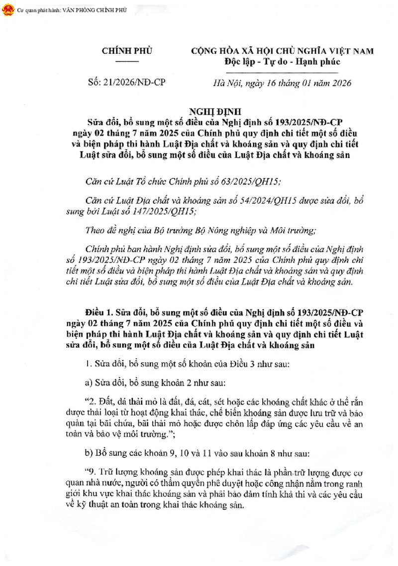 | Số hiệu | 21/2026/NĐ-CP | Cơ quan ban hành | 64dad9609d7c883f720a7d82 |
