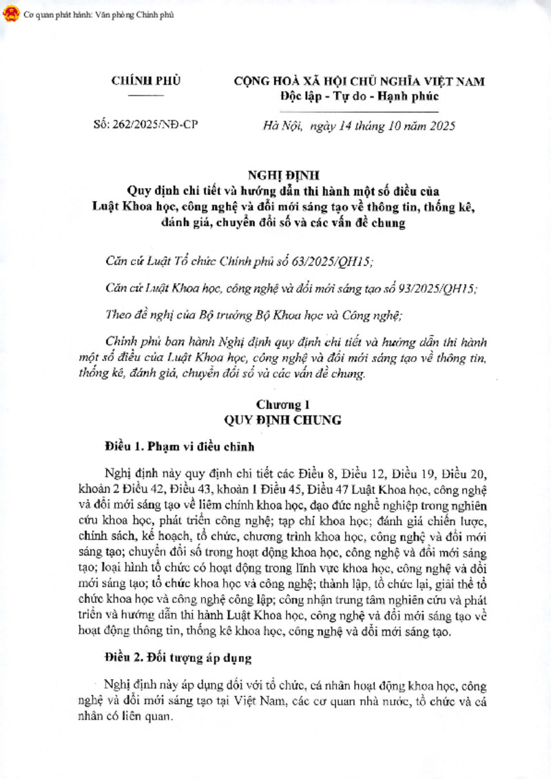 | Số hiệu | 262/2025/NĐ-CP | Cơ quan ban hành | 64dad9609d7c883f720a7d82 |