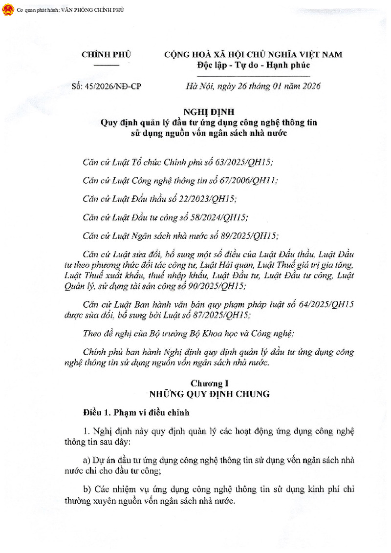 | Số hiệu | 45/2026/NĐ-CP | Cơ quan ban hành | 64dad9609d7c883f720a7d82 |