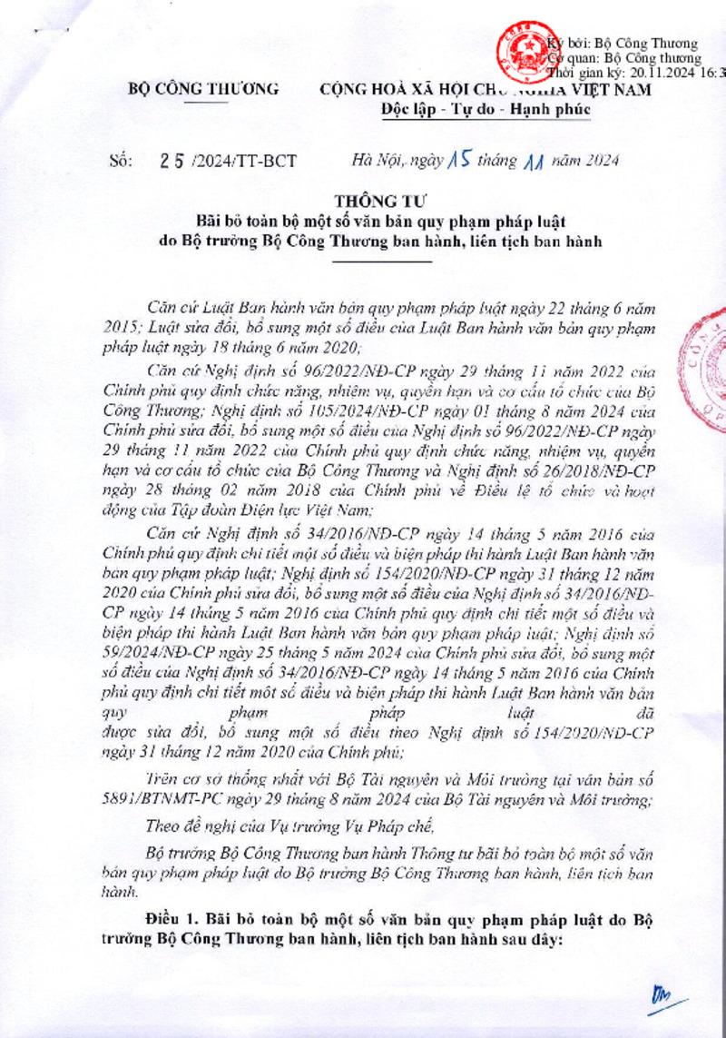 | Số hiệu | 25/2024/TT-BCT | Cơ quan ban hành | 64e1edab11a7ffbd39065d82 |