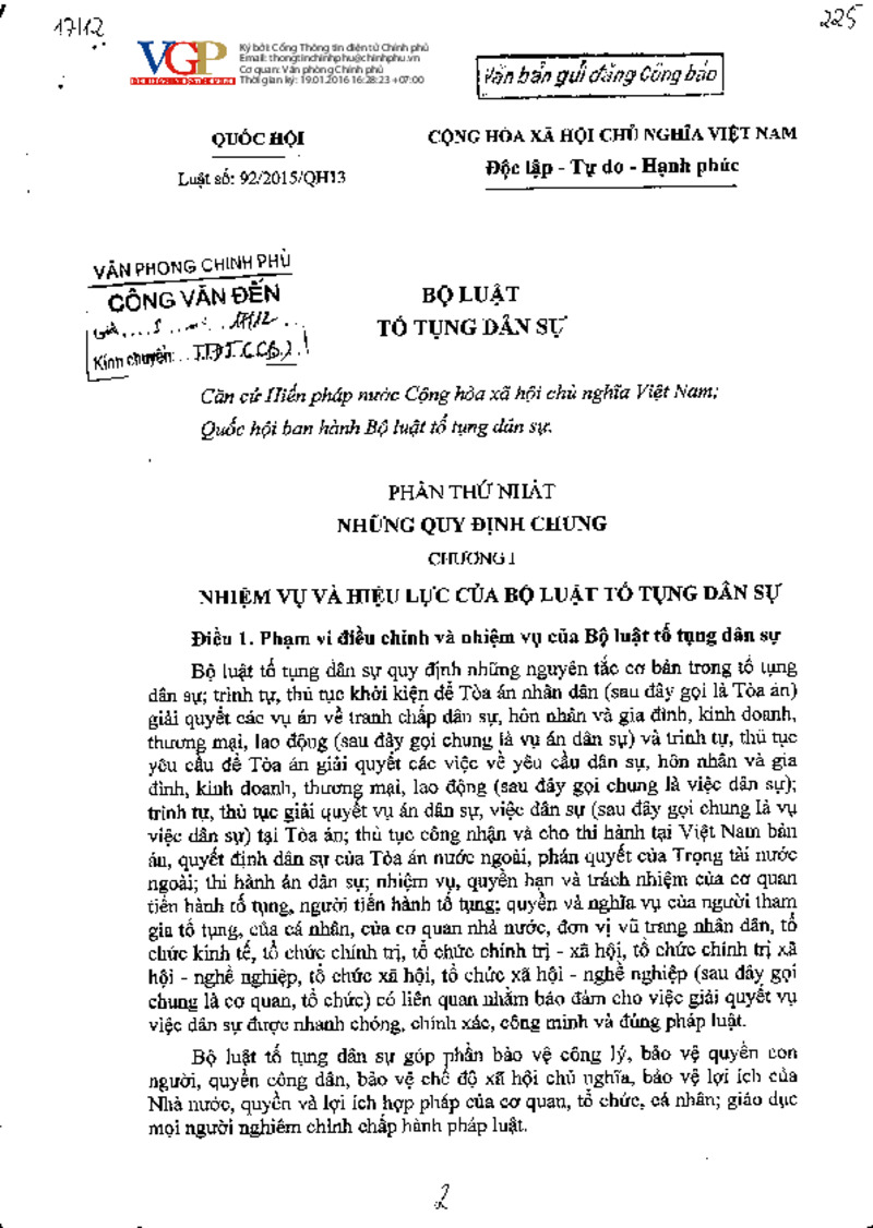 | Số hiệu | Luật số: 92/2015/QH13 | Cơ quan ban hành | 64dd9c648758be18e60eab52 |