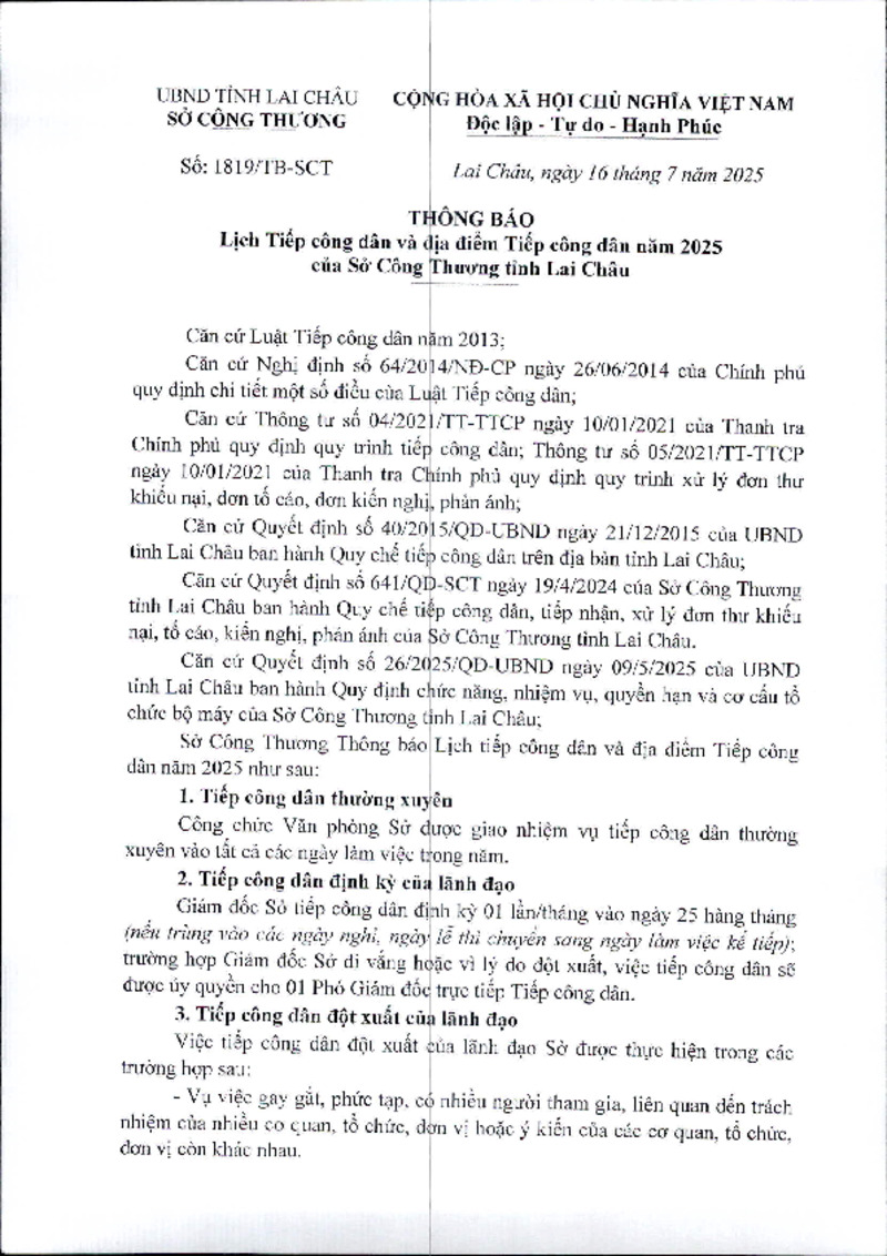 | Tiêu đề văn bản | Thông báo lịch tiếp công dân và địa điểm tiếp công dân năm 2025 | ||