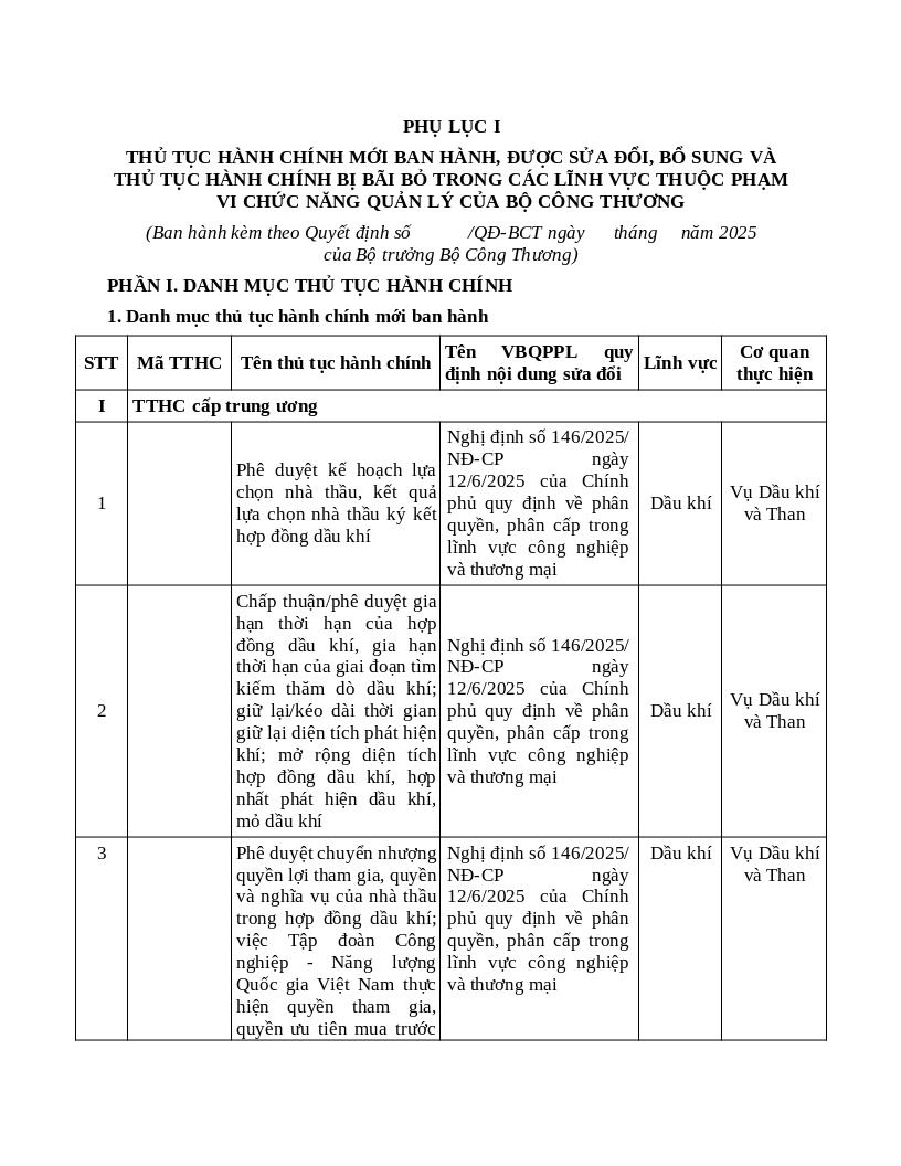 | Tiêu đề văn bản | Quyết định về việc công bố Danh mục thủ tục hành chính mới ban hành; thủ tục hành chính được sửa đổi, bổ sung; thủ tục hành chính bị bãi bỏ trong các lĩnh vực thuộc phạm vi chức năng quản lý của Sở Công Thương tỉnh Lai Châu | ||
