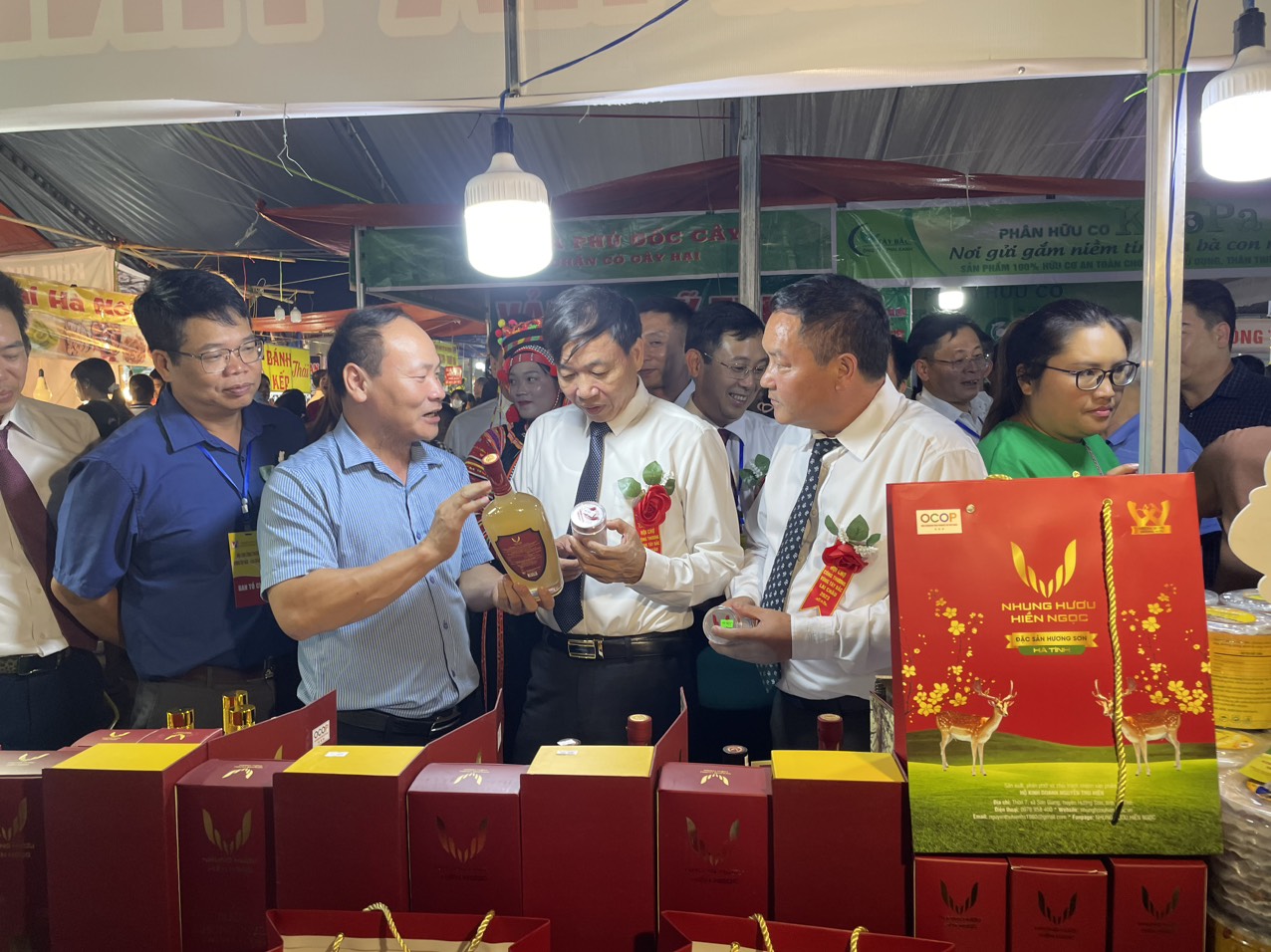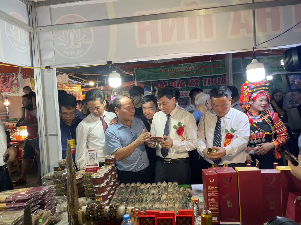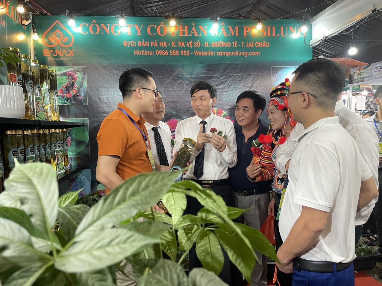 Đồng chí Lê Văn Lương - Phó Bí thư Tỉnh ủy, Chủ tịch UBND tỉnh Lai Châu cùng các đại biểu thăm quan gian hàng của tỉnh Lai Châu...